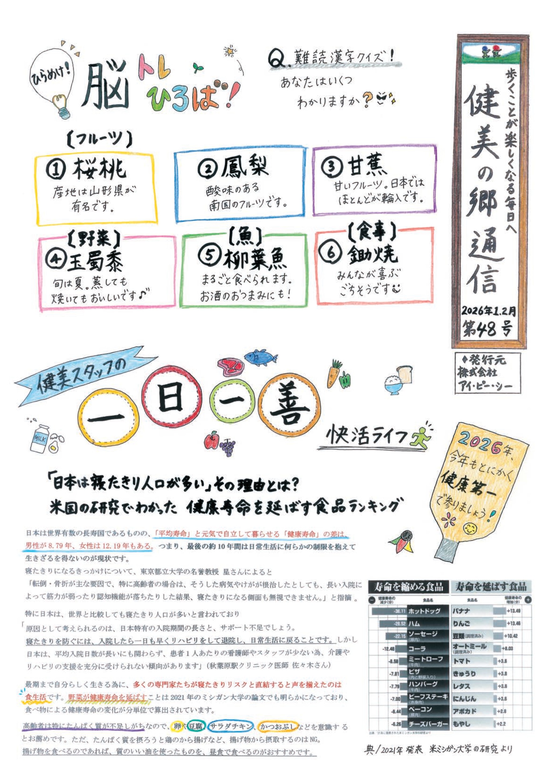 2026.1-2月の健美の郷通信 第48号を発行しましたのでご紹介させて頂きます☆彡